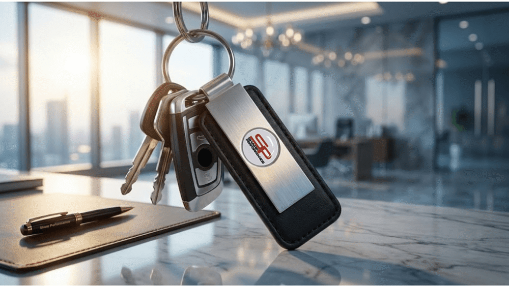When you give away a promotional keychain, your customer will have a constant reminder of your company with them everywhere! At Sharp Performance USA, we specialize in manufacturing the highest quality keychains on the market. Many color, material, and finish options available. Don't let your cars roll off the lot without a car key tag with your dealership contact info! To order custom keychains call your rep for details! 800-553-9824